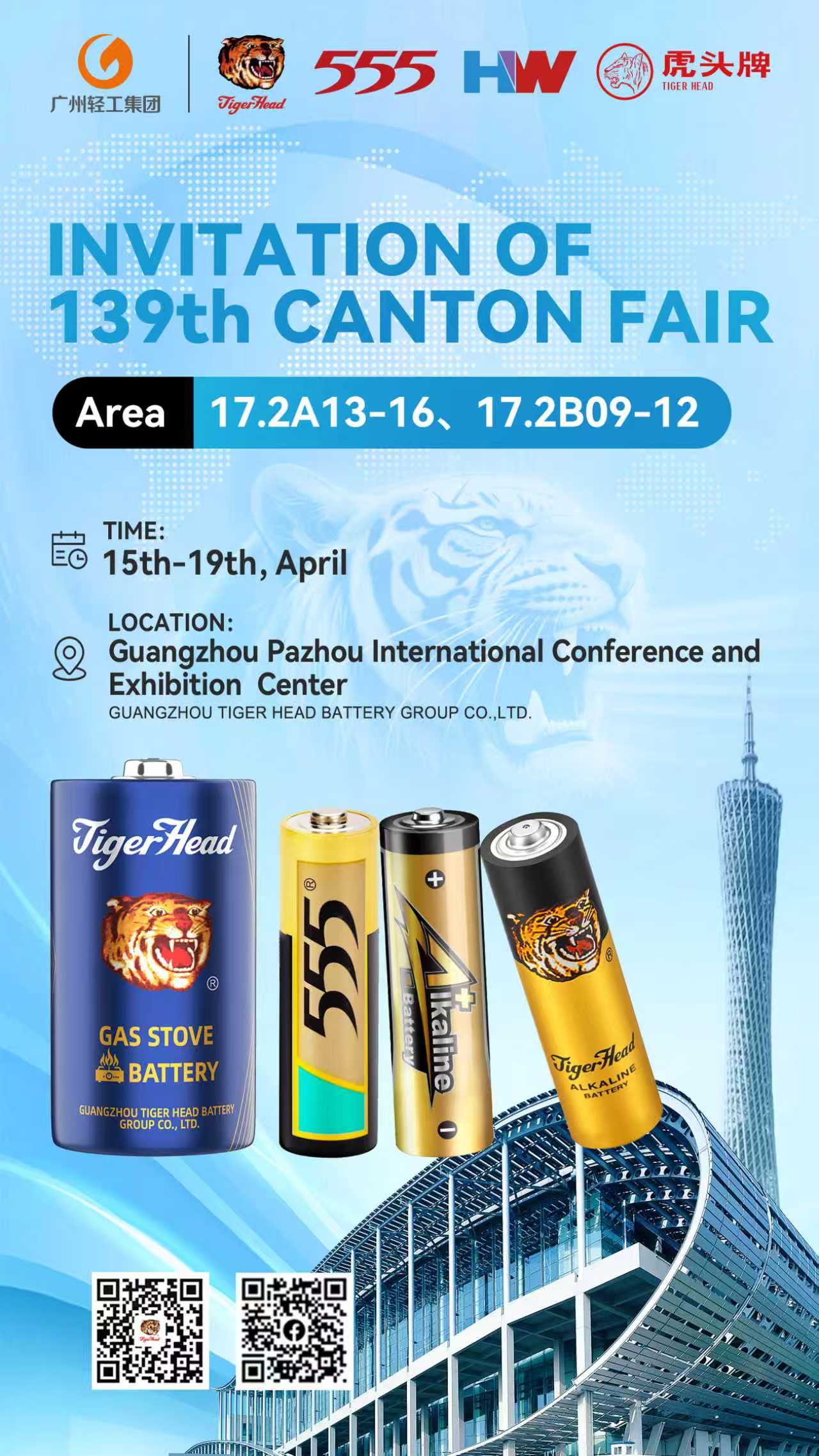 A Tiger Head Battery Group Co., Ltd., fabricante de baterias reconhecida mundialmente, participará da 139ª Feira de Cantão (Feira de Importação e Exportação da China), de 15 a 19 de abril de 2026 , no Complexo da Feira de Importação e Exportação da China, em Guangzhou, China. A empresa apresentará suas mais recentes inovações, incluindo baterias alcalinas de alto desempenho, baterias automotivas confiáveis e baterias VRLA (baterias de chumbo-ácido reguladas por válvula) avançadas.